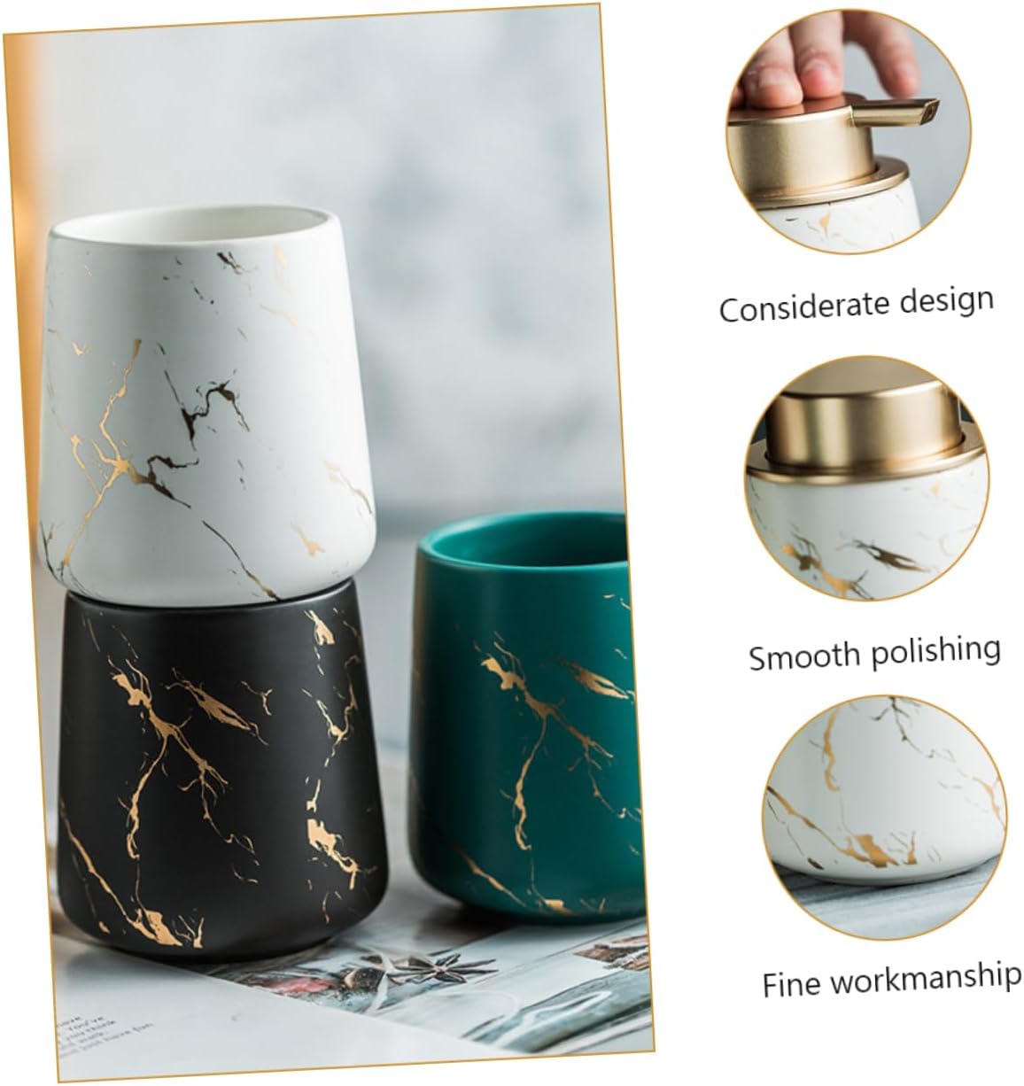 Package Include 2 x cups 1 x soap tray 1 x Lotion bottle Characteristics - Material: ceramic Wash Cup Set. - Size: 11.40X11.40X2.00cm/4.48X4.48X0.79in Bathroom Washing Supply. - Considerate make sure toothbrush and toothpaste are contained clean and neat Toothbrush Cup. - This set of wash cup is wonderful, elegant bathroom accessories organizer with great Lotion Box. - Fine workmanship, smooth polishing, multi-purpose, can be used as a wash cup Toothbrush Holder. - This set includes two cups, one lotion bottle and a soap tray, convenient to use Washing Cup. - Small size and portable, convenient to carry and store. Simple and classic appearance Soap Dish.Goods InformationWashing Cup Chic polishing and smooth surface.Soap Dish Fine workmanship and beautiful appearance, can ensure its popularity among women and men.Toothpaste Cup This item is a set of bathroom washing cup, which is made of for use