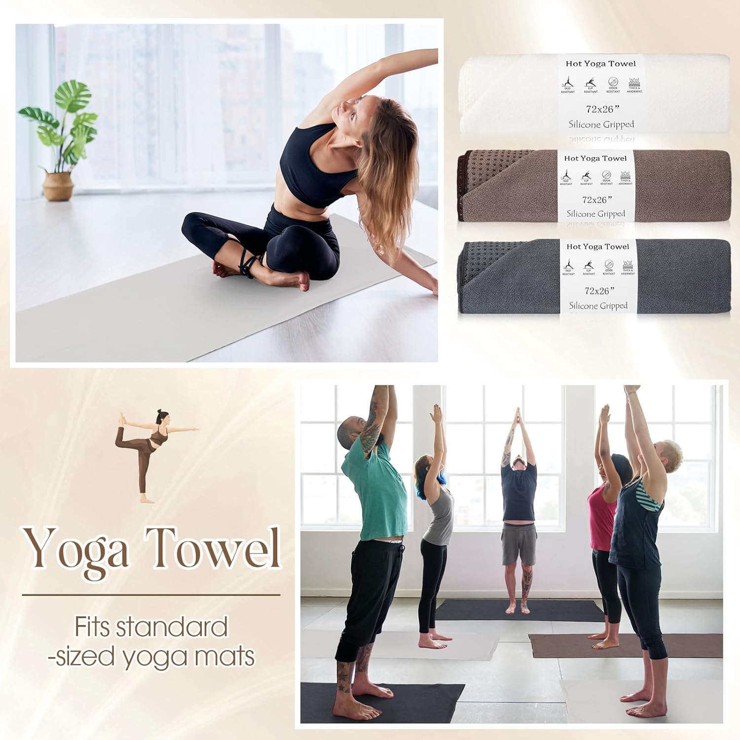 Features: Ideal yoga and pilates companion: This hot yoga towel features non-slip dots and is designed for professional practitioners, providing excellent stability. Available in a variety of colors, it makes an ideal gift for yoga enthusiasts. Multi-functional and portable design: Lightweight and easy to roll up, this towel is convenient to carry and perfect for studio, travel, beach, or camping use. It can be applied not only as a yoga towel but also as a bath towel, body wrap, or rest blanket, offering versatility to meet various needs. Specifications: Material: microfiber Color: beige, dark gray, coffee Size: 72 x 26 inch/ 183 x 66 cm Package includes: 3 x Hot yoga towels Notes: Manual measurement, please allow slight errors on size. The color may exist a slight difference due to different screen displays.
