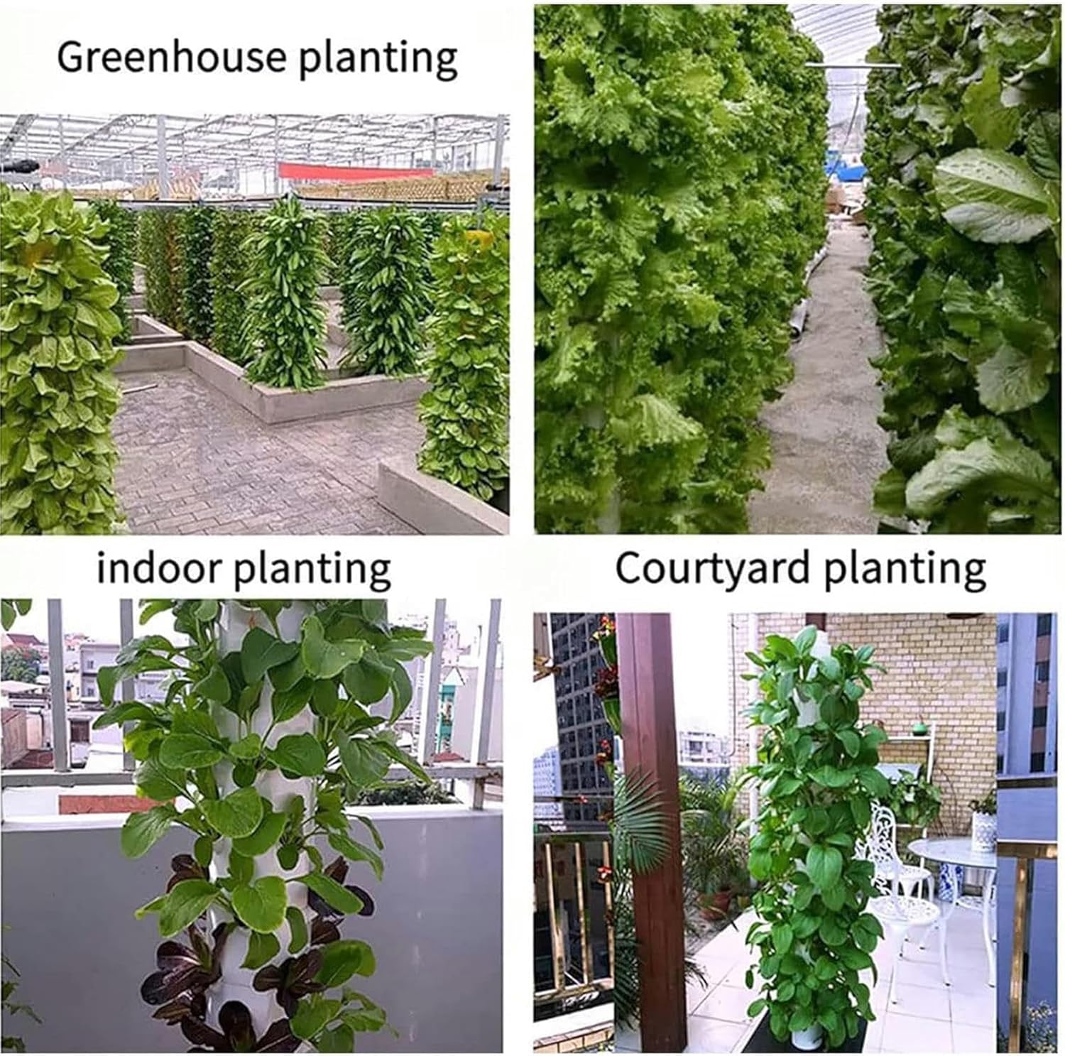 The hydroponic growing system is designed to encourage you to grow vegetables, flowers and fruits all year round, which is a fund engaging experience. Its compact desiglso makes it the best choice for tight spaces. You calso use it to monitor the growth of vegetables at any time. From germination to seedlings to maturity, record every process of your own planting. In the family, too, grow with your kids and research how to grow healthy vegetables. Compared with traditional farming, the yield can be increased several times. Requires less water, less space. Specifications: Color: White Material: Food grade ABS Aperture: 60mm Water capacity: 30L Product size: 40*40*154cm Product weight: 7.5 kg Package dimensions: 43 x 43 x 51 cm Package includes: 1 x Vertical Planting System Notes: Before purchg, please confirm the size shown in the description, please allow 1-2cm error due to manual measurement.