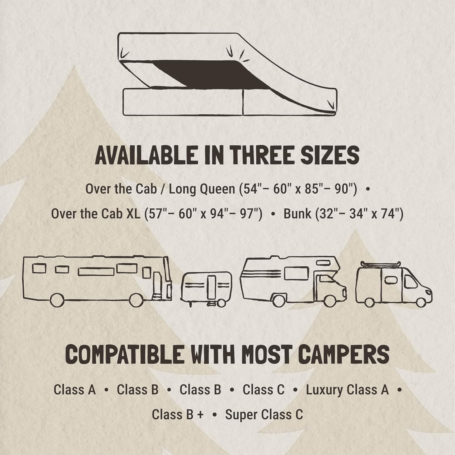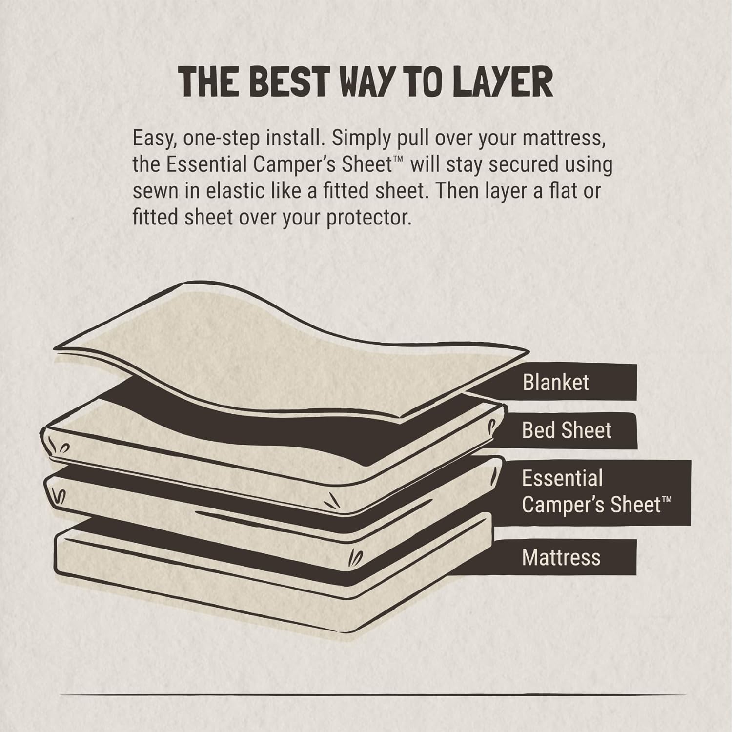 Experience unparalleled RV mattress coverage with The Essential Camper’s Sheet from Mattress Safe. Designed for life on the road, it provides water-resistant, adventure-ready coverage that helps keep dirt, mud, spills, and outdoor debris off your camper or RV mattress for peace of mind wherever you park. This protector is expertly made to help maintain a cleaner sleep surface by reducing exposure to everyday messes like pet hair, dust, and travel-day buildup. Its easy, one-step install pulls over your mattress like a fitted sheet for a secure fit, making it especially ideal for bunks and irregular RV mattress sizes. The comfortable, durable fabric supports a clean, cozy sleep environment after long hikes and road trips. Easy to maintain, it’s machine washable for your convenience. Designed for RVs, campers, and travel trailers, it’s a simple, reliable solution for keeping your mattress fresh on every adventure.