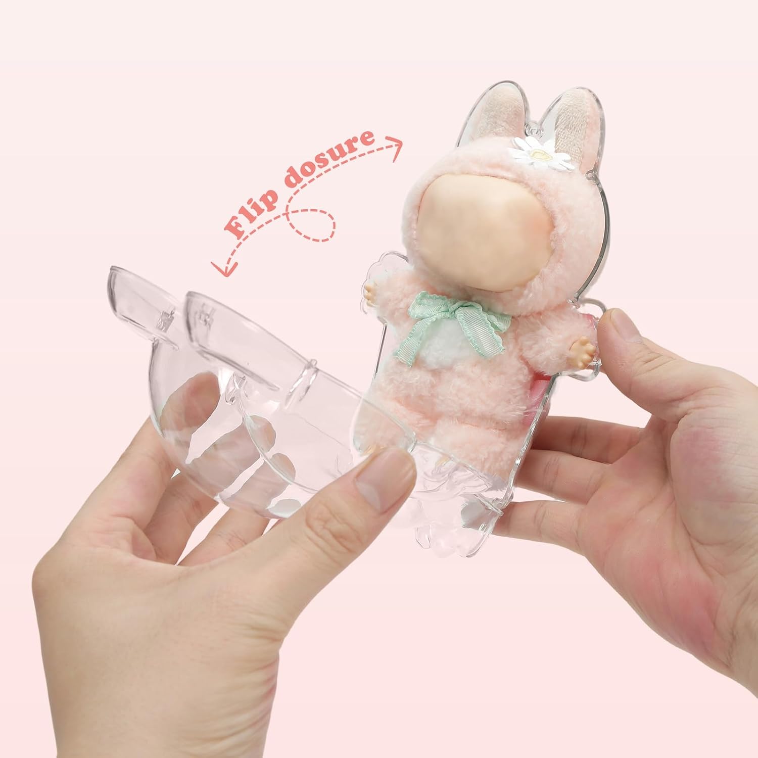 Palm-Style Clear Figure Display Bag with Keychain for Doll,Plastic Protective Cover(Doll Excluded)