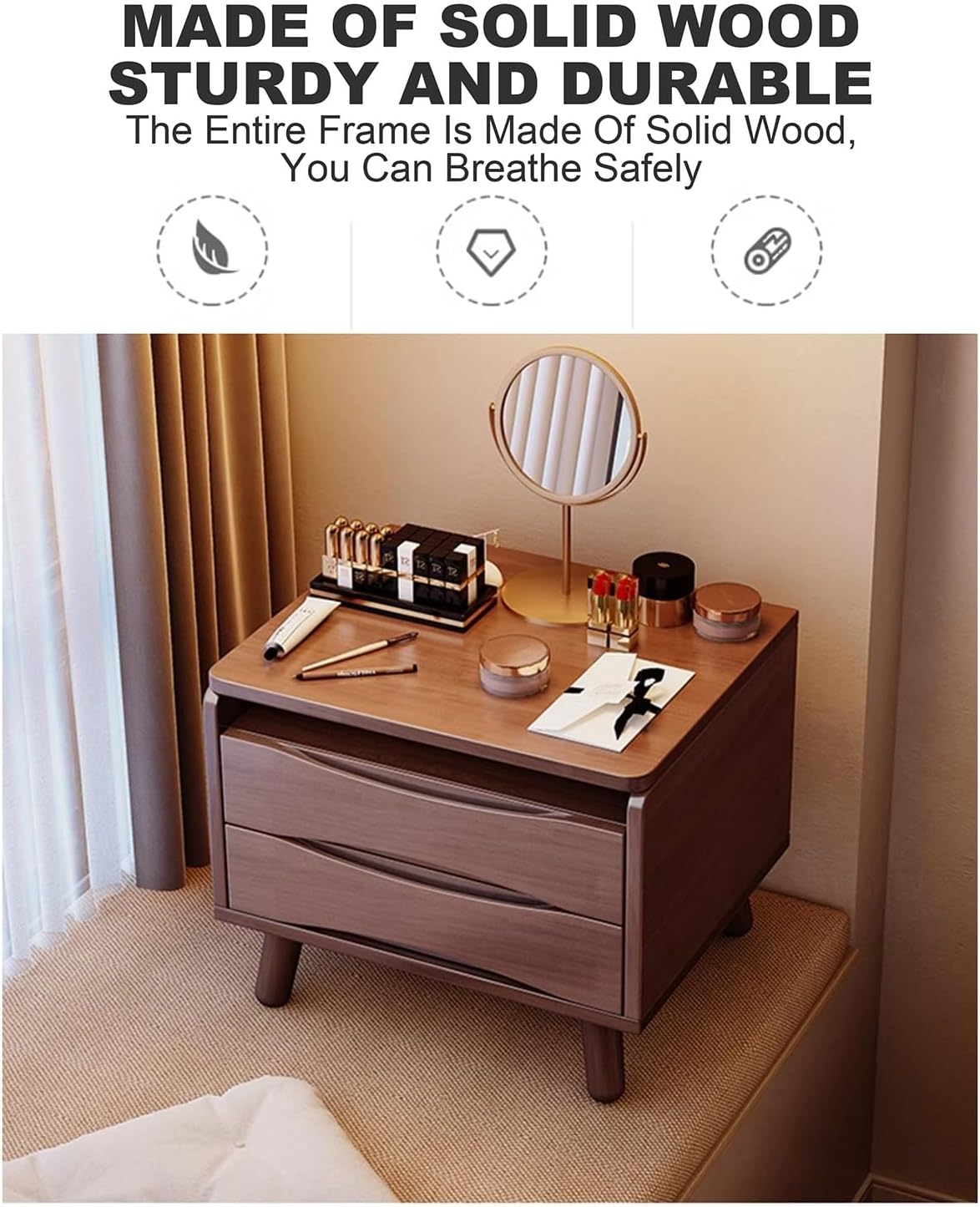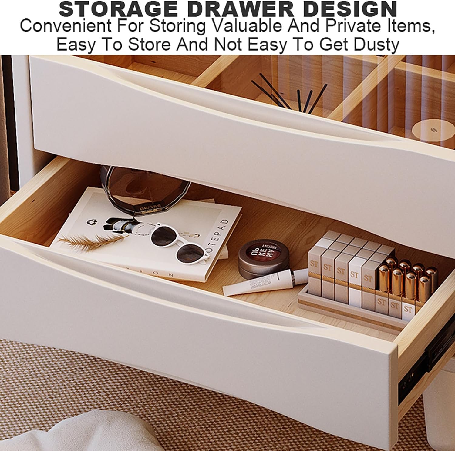Small Vanity Desk,Makeup Vanity with Mirror and Lights,3 Lighting Modes,Dressing Table with Drawers and Lots Storage,Easy to Move Space-SavingFeaturing a sleek design, our vanity desk comes equipped with a high-quality mirror and integrated lights with 3 adjustable lighting modes. These modes ensure you have the perfect lighting for every occasion, from a natural daytime look to a glamorous evening glow.Large Storage CapacityThe dressing table includes spacious drawers and ample storage, allowing you to keep all your makeup and beauty essentials organized and within reach. Despite its generous storage capacity, the compact design makes it easy to move and space-saving, ideal for any bedroom, makeup room, or dorm.Our vanity table is designed with mobility in mind. Lightweight and easy to move, you can effortlessly rearrange your room or relocate the table as needed. Whether you’re redecorating or simply want to change your layout, this feature ensures flexibility and convenience.Crafted from materials, this vanity table is built to last. The sturdy construction ensures durability, while the elegant design adds a chic touch to your bedroom décor.Designed with the needs of women and girls in mind, this vanity table is perfect for anyone who loves to keep their beauty essentials organized and easily accessible. It's a versatile piece that fits seamlessly into any bedroom or studio, making it an excellent choice for young girls, teenagers, and adults alike.Package Contents:1 x Vanity Table1 x Tools BagAttention:Children must be under adult supervision to use the product.It is forbidden children to climb or play on the product to avoid serious body injury caused by the tilt.During the assembly process, keep small parts out of the reach of children. It may be fatal if swallowed or inhaled.Please don’t use this item as the ladder.