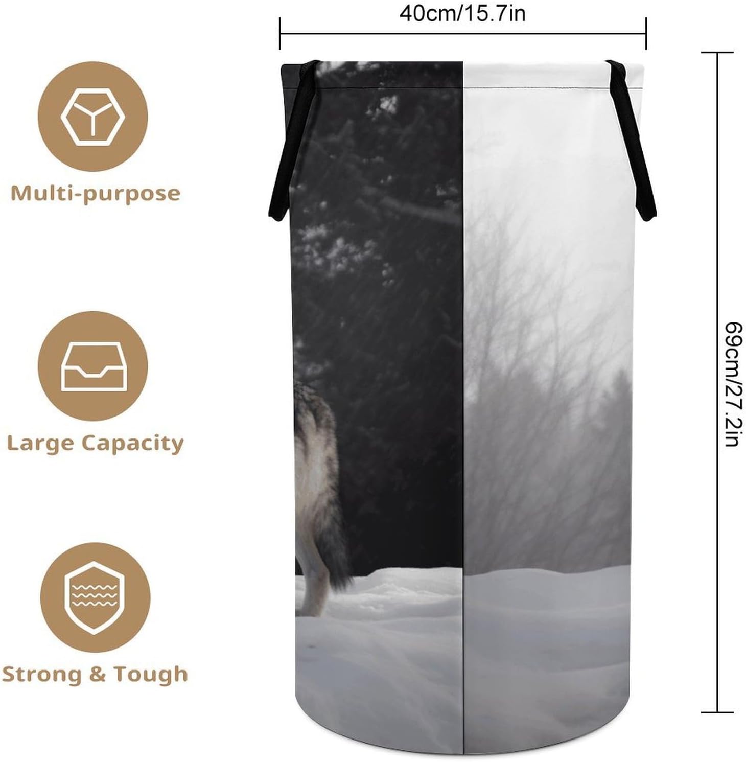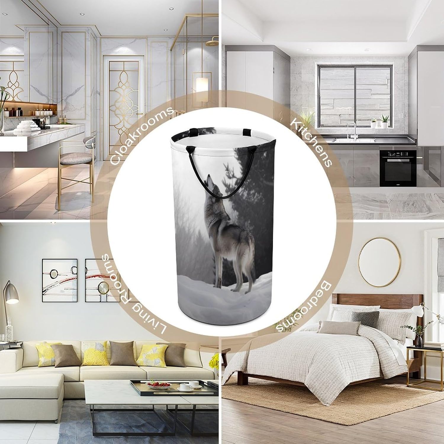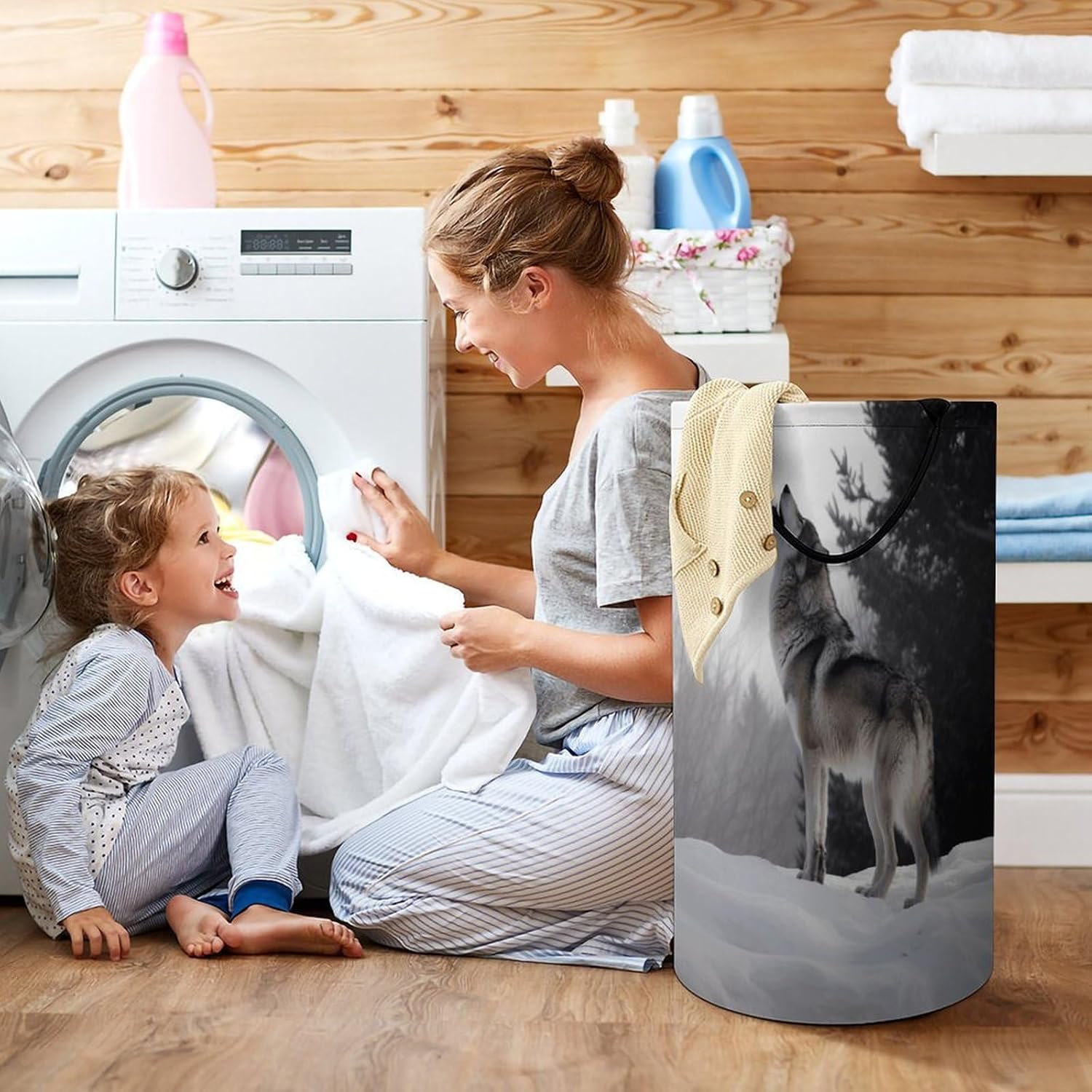 The pattern of the Howling Wolf hamper is printed with exquisite patterns, which makes the product more attractive.Chic design allows it to be used in the living room to hold throw blanket, pillows, and reading materials, as well as in the bathroom for towels, or as a laundry hamper.The laundry hamper adopted collapsible design, equipped with handles. It is lightweight and portable for using, storing, and moving conveniently.Howling Wolf Clothes hamper is suitable to store dirty clothes washing, place in the room to store toys, and other household goods, keep the house clean and tidy. Perfect laundry hamper for home, office, closet organizer, bedroom, bathroom, college dorm, etc.Gets out of your way when you need it to. This storage basket or laundry hamper is a good gift, which not only meets everyday storage needs but also carries deep care and love, a perfect way to turn thoughtfulness into warmth.