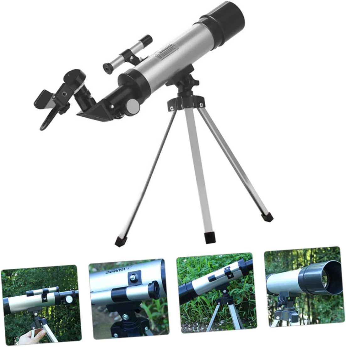Package List 1 x telescope 1x 1 x H20mm eyepiece 1 x H6mm eyepiece 1 x 1.5X upright eyepiece 1x Tripod Characteristics - Theoretical resolution: 2.800 arcseconds, which is equivalent to seeing two objects 1.357 cm apart meters telescope. - Focal length: 360mm.f/7 telescope handheld stargazing - Large magnification of this section: 90 times (objective lens focal length/eyepiece focal length * several times Barov’s multiple = large magnification) telescope - Clear aperture: 50mm (2.4″) beginner telescope - Tripod height: 34cm telescope for adults - Eyepiece: H6mm, H20mm, 1.5 times extender - Size: About 45x34x34cm/ 17.68x13.36x13.36 inch. - Refraction type/focal length: 360mm, clear aperture: 50mm - Color: Silver. - Oblique mirror: 90° - Visual penetration through : 10.49 - Material: ABS, acrylic, glass, aluminum alloy. - Standard 0.965 inch accessories include: - telescope for astronomers to explore stars and moon telescope for adults astronomy. - or beginners can install it themselves without any tools refractor telescope. SpecificationGoods Informationbeginner telescope It is suitable for astronomical observations and land use as a powerful range, with optical glass objective and full multi-coating, so even in low lighting conditions also has a very .telescope for adults astronomy This is a compact and versatile telescope with a distinct sight and a high magnification power.telescope handheld stargazing Suitable for and teenagers