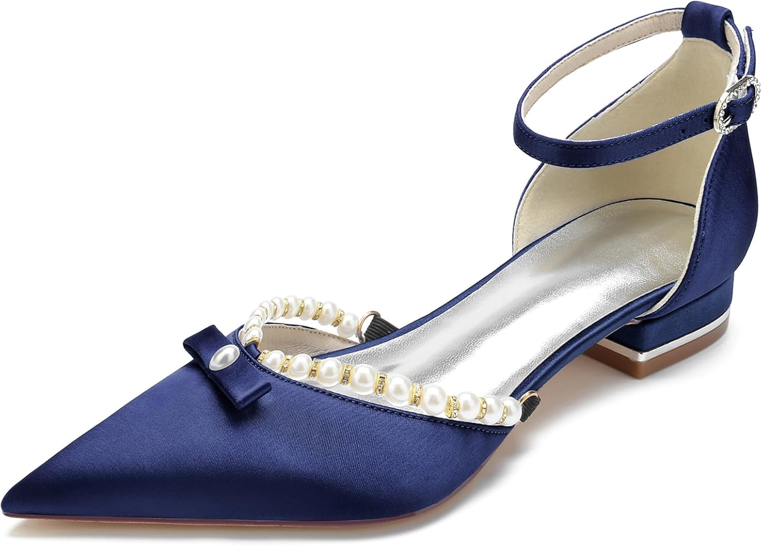Bridal Bridesmaid Wedding Party Flats Pointed Toe Satin Low Heel Ankle Strap Buckle Flat ShoesGender: FemaleCategory: WeddingOccasion: party and evening, weddingHeel height: 0.98 inches / 2.5 cmInternal Material: PUSole Material: RubberUpper material: satinWe offer a variety of women's dress shoes, such as high heels, platform shoes, sandals, strappy shoes, flats and so on.Warm Tips:Please choose your size according to our size chart, our size chart may be slightly different from your local standard size.Colors may vary slightly due to light and monitor settings.If you have any other questions, please feel free to contact us by email! Thanks!